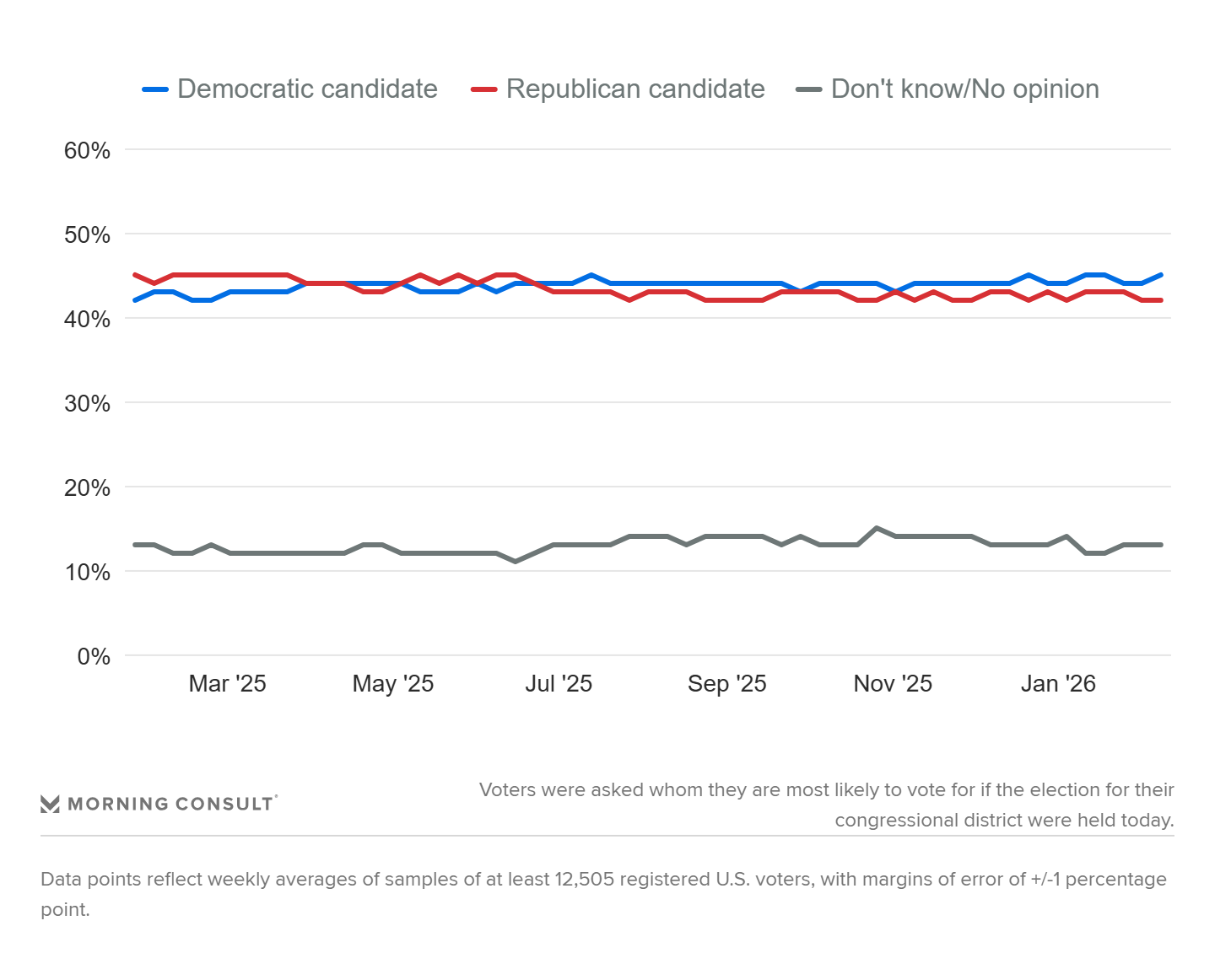 Trump's approval rating nears second-term low Eli Yokley, Morning Consult Democrats lead Republicans on the generic ballot Eli Yokley, Morning Consult