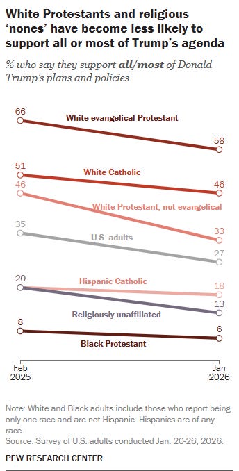 White evangelicals remain among Trump’s strongest supporters, but they’re less supportive than a year ago Chip Rotolo and Gregory A. Smith, Pew Research Center