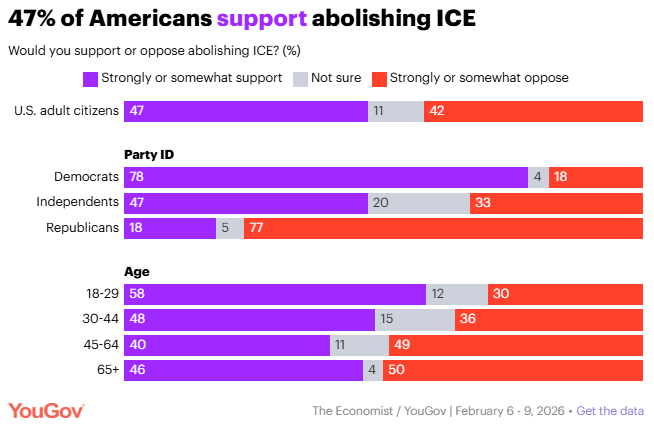 Most Americans want fewer immigration agents in Minneapolis, and more support than oppose abolishing ICE Taylor Orth, YouGov Most Americans want fewer federal immigration agents in Minneapolis, and slightly more Americans support than oppose abolishing Immigration and Customs Enforcement (ICE).