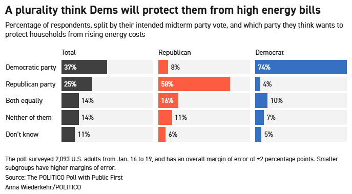 Democrats gain an edge as poll shows doubts on Trump energy strategy Zack Colman, Politico Slightly more Americans think Democrats, not Republicans, are the party most committed to reducing energy prices, a new POLITICO poll has found — yet another sign of potential trouble for President Donald Trump and the GOP on the issue of affordability.