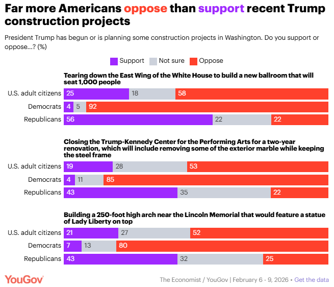 Trump International Airport? Most Americans disapprove of renaming Dulles Taylor Orth, YouGov By large margins, Americans oppose each of three recent Donald Trump construction projects: building a new White House ballroom, renovating the Trump-Kennedy Center, and building an arch near the Lincoln Memorial. Large shares also disapprove of his renaming of the Kennedy Center and his proposed renaming of the Dulles Airport.