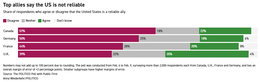 Top NATO allies don’t think US helps deter enemies anymore Nicholas Vinocur and Erin Doherty, Politico
