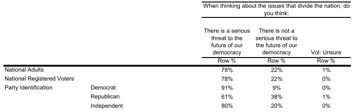 The State of the Union is Not Strong, Says a Majority Marist Institute for Public Opinion When thinking about the state of the union, a majority of Americans, say the United States is not very strong or not strong at all. In fact, six in ten Americans think the country is worse off than it was a year ago, and even more Americans say the system of checks and balances is not working well. Taken together, the results of these questions underscore the view of more than seven in ten Americans that U.S. democracy is in jeopardy.
