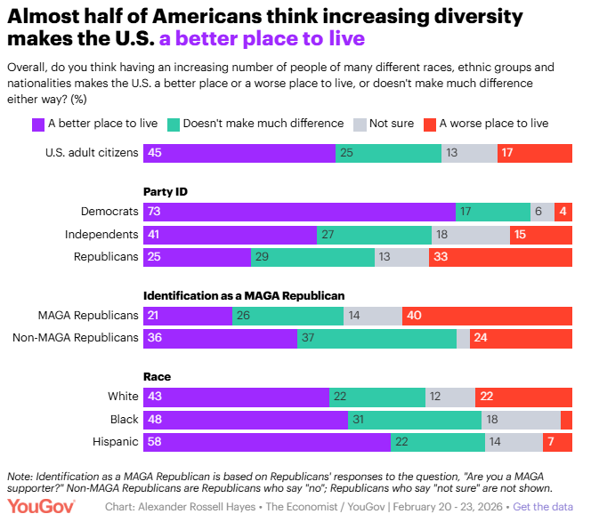 Americans are divided about the state of race relations and how successful the civil rights movement has been Alexander Rossell Hayes, YouGov Americans are more likely to say that growing diversity makes the U.S. a better place to live than to say it makes the country worse. They're also more likely to say that racism is a big problem today than to say it's either a small problem or not a problem.