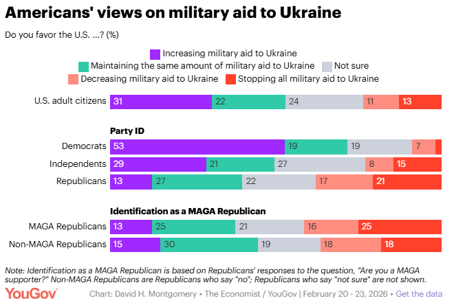 Four years after Russia's invasion, most Americans side with Ukraine but few think it's winning David Montgomery, YouGov Four years after Russia's February 2022 invasion of Ukraine, most Americans side with Ukraine in its war with Russia. But few Americans think Ukraine is winning and Americans are split over how much military aid the U.S. should provide Ukraine.