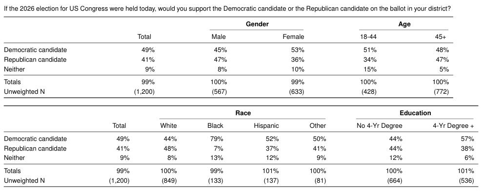 BGSU Poll: Trump’s approval low as concerns over the economy and tariffs persist Democracy and Public Policy Network, Bowling Green State University President Trump received a job approval rating of 41% in this poll and has a net favorability rating of -19 (38-57). A majority (55%) believe the economy has gotten worse in the last year, with only 28% saying it has gotten better. The poll finds an edge for Democrats, with the party leading the generic congressional ballot by 8 points (49-41) over Republicans.