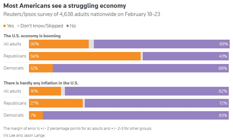 Golden age? Americans doubt Trump's claim of booming economy as midterms near, Reuters/Ipsos poll finds Jason Lange and Bo Erickson, Reuters "This is the golden age of America," President Trump said in his State of the Union address on Tuesday. "The roaring economy is roaring like never before." The latest Reuters/Ipsos poll, completed on Monday, showed 68% of people disagree with a statement that "the U.S. economy is booming," a claim Trump has repeatedly made since returning to office in January 2025.