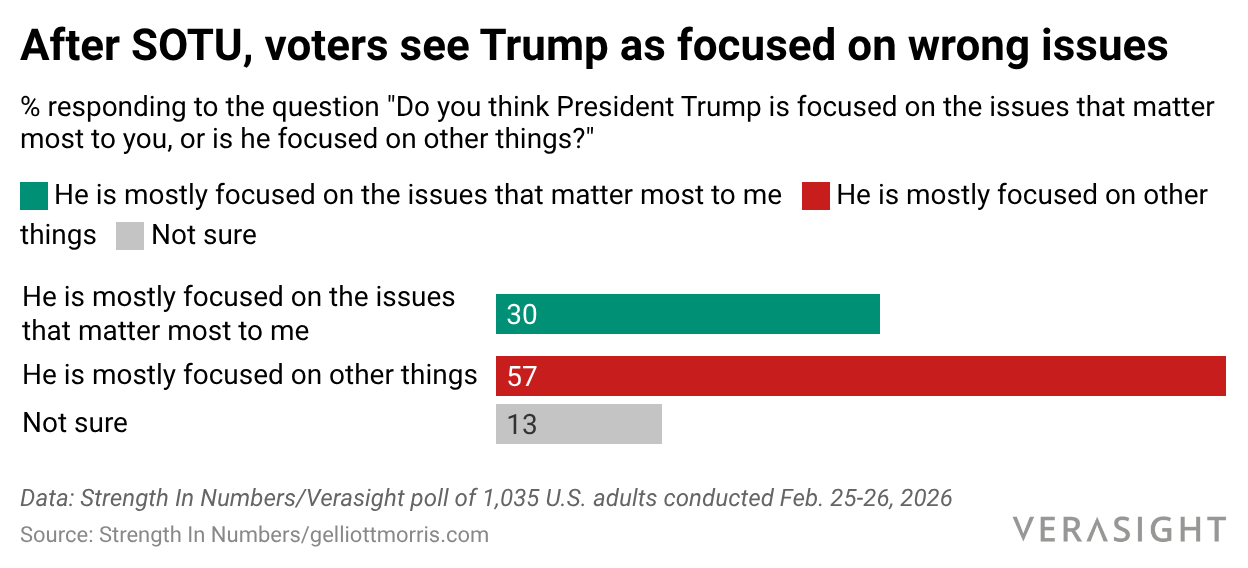 New poll: Trump's SOTU “pivot” to affordability didn't work G. Elliott Morris, Strength In Numbers A poll conducted in the two days after Trump's State of the Union address reveals the public is still skeptical the president can deliver on affordability