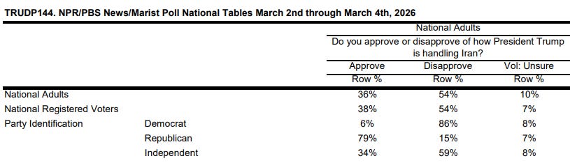 Majority of Americans oppose military action in Iran, new poll finds Matt Loffman, PBS News A majority of Americans disapprove of how President Donald Trump is managing the U.S.-Israeli conflict with Iran and oppose the military action outright, according to the latest PBS News/NPR/Marist poll.