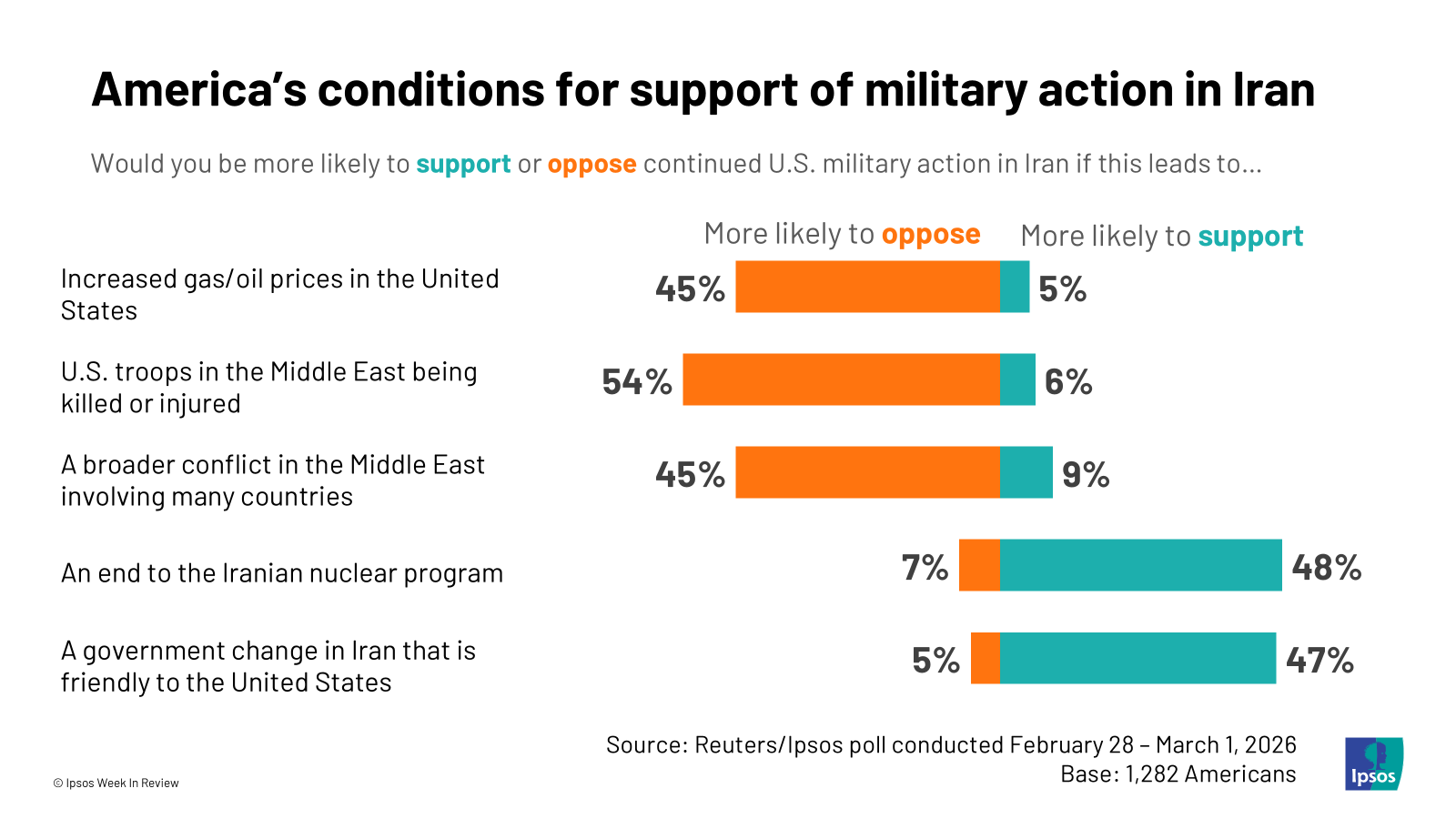 Early polls show doubt about Iran. What comes next? Clifford Young, Ipsos Five charts examining the public's initial reactions to the strikes, the conditions that might shift public opinion, and how uncertainty could shape what comes next