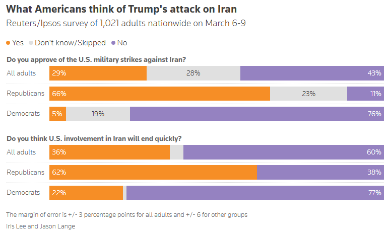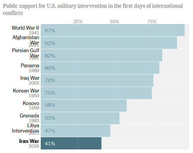 Unlike in Past Conflicts, Most Americans Oppose Iran Attacks Lily Boyce and Ruth Igielnik, The New York Times [unlocked]