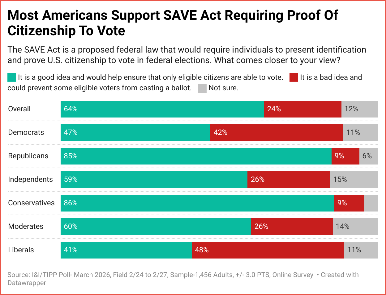 Labor Market Expectations Soften Slightly, but Delinquency Expectations Improve Federal Reserve Bank of New York Two-Thirds Back 'SAVE Act' To Require Voter ID — And Support Is Bipartisan: I&I/TIPP Poll Terry Jones, tippinsights