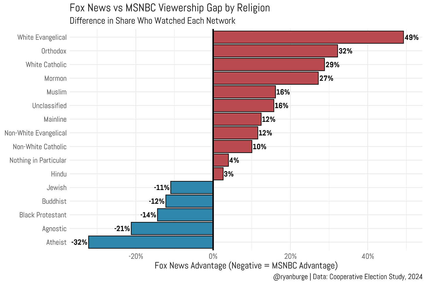 The Fox News Advantage: How Cable News Divides Along Religious and Generational Lines Ryan Burge, Graphs about Religion