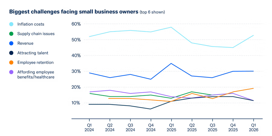 Small Businesses Cut Back Hiring Plans as Inflation Concerns Grow Thaddeus Swanek, U.S. Chamber of Commerce The U.S. Chamber's Q1 2026 Small Business Index reflects rising concerns among small businesses about inflation and the economy.