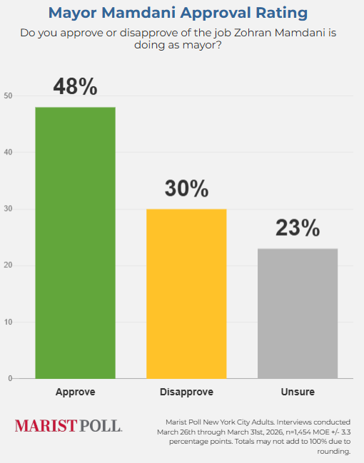 Majority of Voters Support Impeaching Donald Trump Free Speech For People A new national poll conducted by Lake Research Partners and commissioned by Free Speech For People finds that a majority of likely 2026 voters nationwide support impeaching President Donald Trump—an extraordinary and unprecedented level of support so early in a presidential term. New York City: Mamdani Off to a Good Start... Majority Say the City is Headed in the Right Direction Marist Institute for Public Opinion As New York City Mayor Zohran Mamdani marks 100 days in office, he receives positive reviews on his job performance from New York City residents. Mamdani is also perceived as being likeable, hard working, caring, a good leader, representing all New York City residents, and a unifying force in the Big Apple. Opinions of Mamdani are underscored by improved perceptions of New York City. A majority of residents citywide now think things in the city are moving in the right direction, a marked difference from the Fall of 2025.