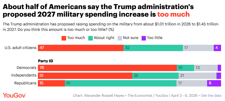 Bipartisan majorities say they pay too much in taxes, but views on spending are more divided Alexander Rossell Hayes, YouGov A majority of Americans say they spend too much in taxes and about half think proposed military spending for next year is too high, according to the latest Economist / YouGov Poll.