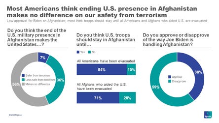 With fewer than 4 in 10 Americans approving of President Joe Biden's handling of Afghanistan, there is overwhelming bipartisan support for keeping U.S. troops in the country until all Americans and Afghans who aided the United States during the 20-year war have been evacuated, a new ABC News/Ipsos poll finds.