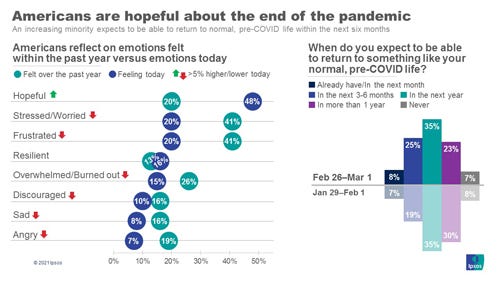 Americans, particularly the vaccinated, are hopeful about the end of the pandemic