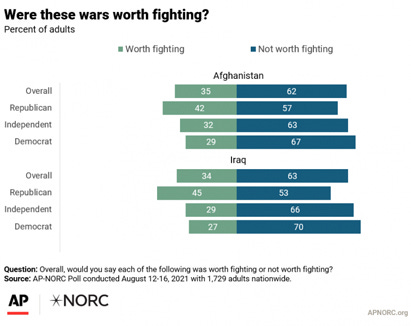 Most Americans say the wars in Afghanistan and Iraq were not worth fighting