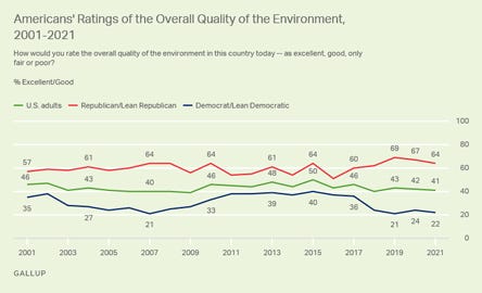 Of six environmental problems facing the U.S., Americans remain most worried about those that affect water quality. Majorities express "a great deal" of worry about the pollution of both drinking water (56%) and rivers, lakes and reservoirs (53%).