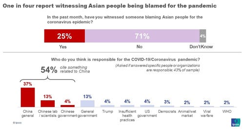 1 in 4 have recently witnessed Asian people being blamed for coronavirus pandemic