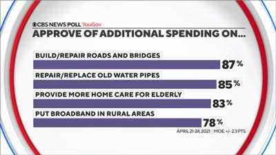 President Biden's proposed infrastructure plan finds majority support among the U.S. public, with several specific areas of investment viewed as worthwhile across party lines. Americans are also largely on board with increasing taxes on corporations and getting the wealthy to pay for it.