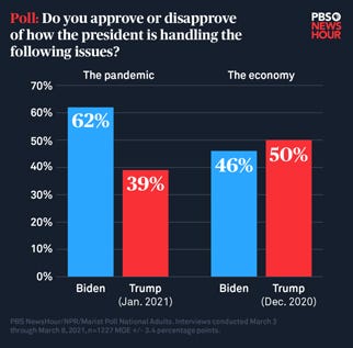 There is no more pressing issue for the U.S. — or the world — right now than the COVID-19 pandemic. And politically, how President Biden is perceived to be handling it over the next year or so could define his presidency and his chances for reelection, if he runs. So far, he's off to a good start, according to the latest NPR/PBS NewsHour/Marist survey.