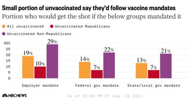 Federal and state governments, businesses and health care experts across America are trying a smattering of ways to convince Covid vaccine holdouts to change their minds. But numbers from the new NBC News poll suggest that only a small portion are open to changing their minds, and Republicans are even less so.
