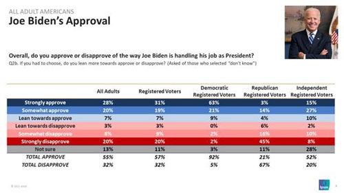 Joe Biden and Kamala Harris were officially sworn in this week as President and Vice President of the United States and the most recent Reuters/Ipsos Core Political shows Americans are now more optimistic about the direction of the country. President Joe Biden starts his first week in office with a 55% approval rating and strong Democratic support.