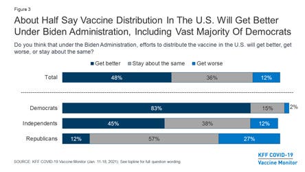 With news reports about states lagging in their vaccine distribution efforts and concerns that the supply of available vaccines will not meet demand, the latest KFF COVID-19 Vaccine Monitor poll (conducted January 11-18) finds two-thirds of U.S. adults (65%) say the federal government is doing a “fair” or “poor” job of distributing vaccines to the states.