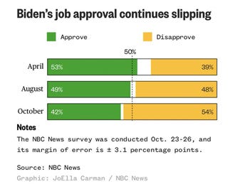 Biden's job rating sinks to 42% in NBC News poll a year from midterms