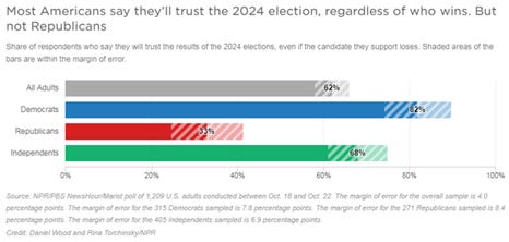 A majority of Americans trust that elections are fair, are confident in their state and local governments' ability to administer elections, and will trust the results in 2022 and in 2024 regardless of whether their preferred candidate wins, a new NPR/PBS NewsHour/Marist poll finds.