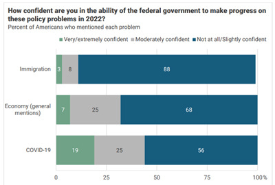 As nearly 800,000 Americans died due to the pandemic and the economy experiences a surge of inflation and an employment slowdown, most Americans are pessimistic about the year ahead. To explore the public’s agenda for 2022, The Associated Press-NORC Center for Public Affairs Research conducted a poll in December 2021 in which respondents provided up to five volunteered issues that they believe should be priorities for the federal government in 2022.